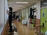 ガラス拭きは、日ごろなかなか行き届かないところもきれいにしていただきました。本校校舎は大変採光がよく電気代の節約に役立っていますが、一層光が入りやすくなりました。また、10月20日に行う人権教育研究発表会で来校されるお客様を気持ちよくお迎えできるようになりました。