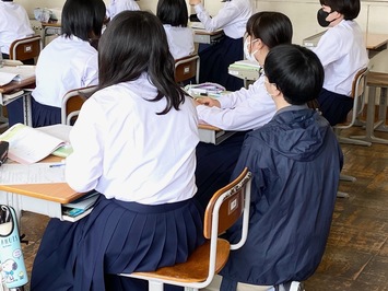 昨日(22日)の、田中教諭による1年生数学の授業です。単元は「正負の数」、ねらいは「同じ数の乗法を表すことと、計算ができるようになろう」です。