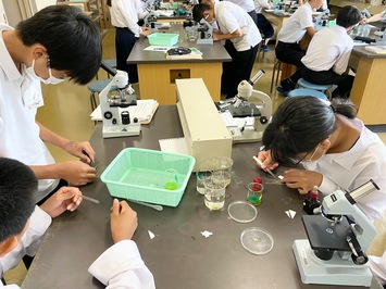 理科の授業では、観察や実験を多く取り入れ、生徒が理科に興味・関心をもてるようにしています。