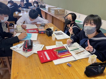 色鉛筆で塗ったと思わせない色彩にするために、みんな一生懸命取り組んでいました。