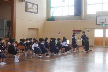 最後は、みんな大好きクイズコーナー。学校を題材にしたクイズを6年生が考えました。上級生にとっても、知っているようで知らない意外な問題もあり、「ええ~?」「やっぱり!」「そうだったかあ~。」と、にぎやかな声が体育館に響きました。短い期間で企画・準備をしてくれた6年生、ありがとう。