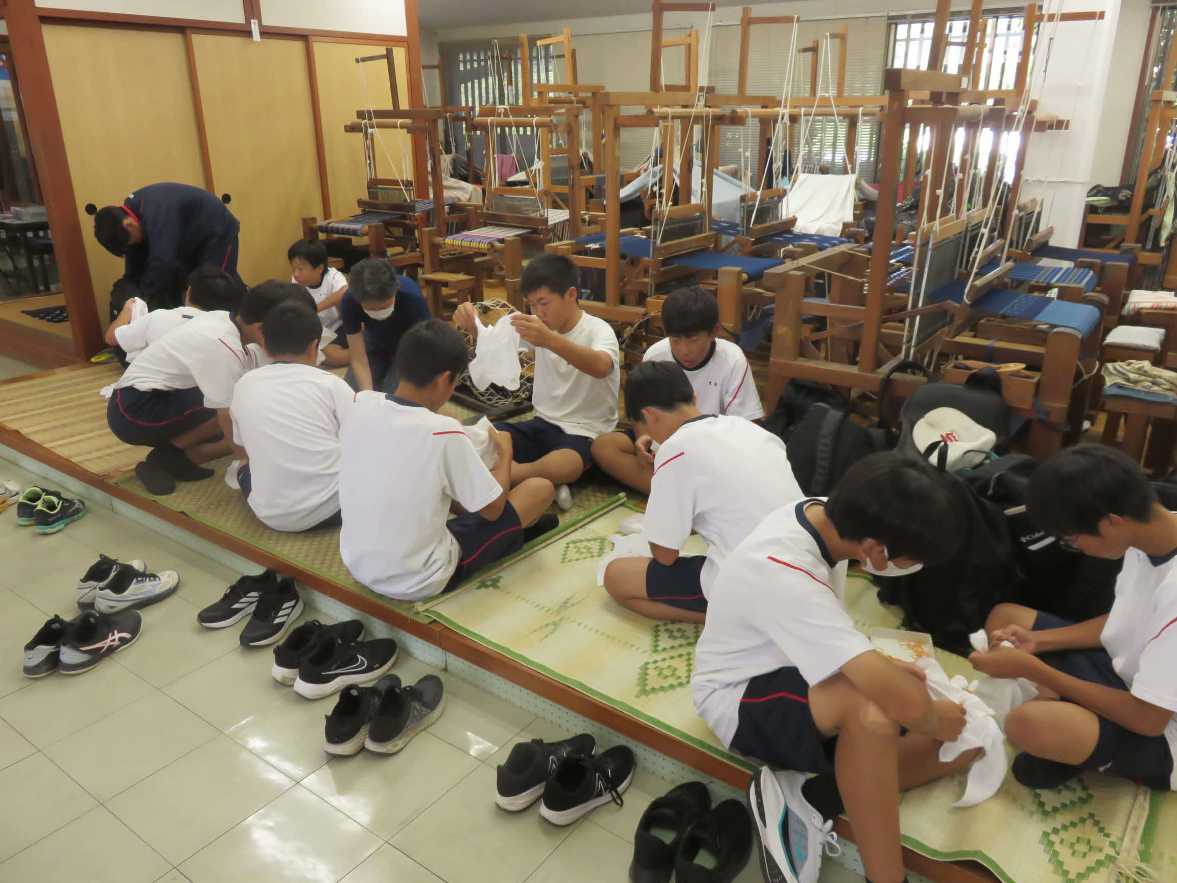 広瀬地域の伝統工芸について知るとともに、その技術を守り、伝えていこうとする人の思いに触れることを目的とした「藍染体験」を、1年生対象に実施しました。講師の皆さんに丁寧にご指導いただき、満足いく作品に仕上げることができたようです。