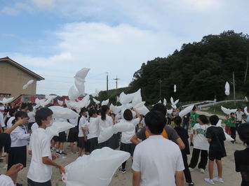 第9回安来市平和のつどいが、布部ふれい体育館を会場に開催されました。広瀬中学校からは吹奏楽部と、司会者を含むボランティアの生徒が多数参加しました。みんながそれぞれの持ち場でよく頑張りましたが、特に司会の三人は、開会から閉会まで緊張が続くなかしっかりとその重責を果たし、参加者の皆さんから感心の声があがっていました。