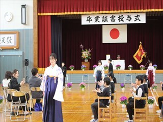 3月19日(火)令和5年度の卒業式(卒業証書授与式)を行いました。5名の卒業生はお家の方と一緒に登校してきました。