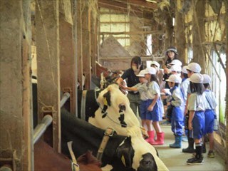 10月15日(火)1・2年生は校区内にある牛舎へ見学に出かげました。