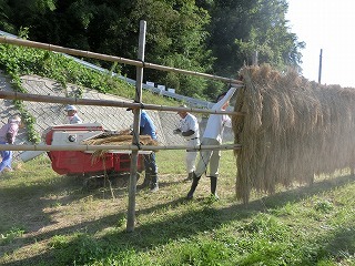 井尻少稲作の会の皆さんの力で、「米作り」は脱穀まで、たどり着きました。