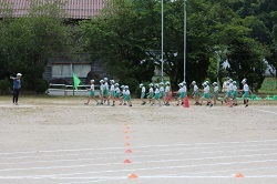 感染症対策や熱中症対策として、十分な間隔をとったり水分補給の時間を設けたりするなど、配慮を講じた上で実施しました。