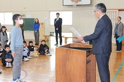 終業式の後には、コンクール受賞者の表彰を行ったり、冬休みの暮らし方についてのお話を聞いたりしました。