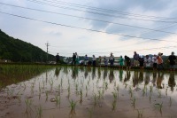 5年生が地域の方々のご指導のもと、田植えに挑戦しました。多くの子が初めて田んぼに入りましたが、上手に苗を植えることができました。今から秋の収穫が楽しみです。