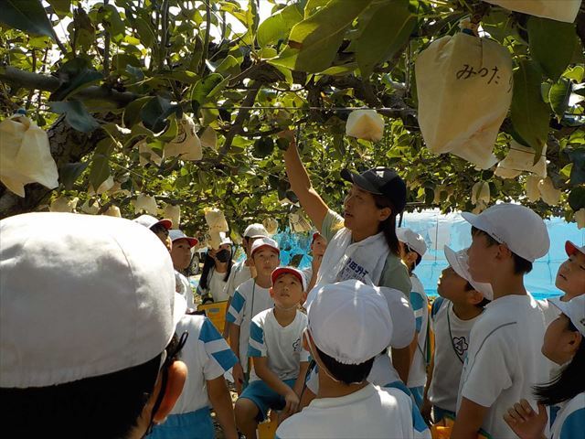 3年生は、総合的な学習の時間に、島田の梨について学習しています。6月に袋かけをした梨が大きくなっていると聞き収穫に出かけました。農園の方から梨の収穫の仕方を聞き、一人一人が丁寧に収穫していきました。翌週には、梨の選果場を見学しました。収穫した梨がどのように出荷されていくのかを知ることが出来たようです。