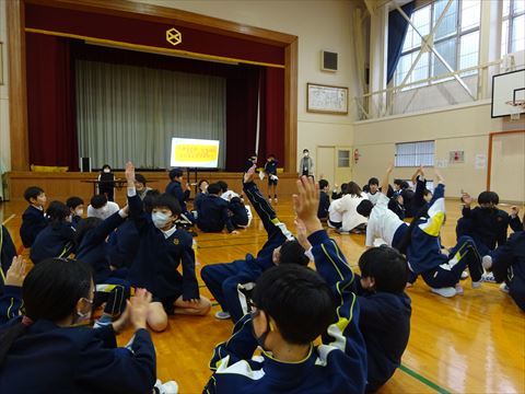 最初に安田小人権宣言を全校で読み上げた後、「しあわせのバケツ」の読み語りを聞いたり、縦割り班でがんばっていることやうれしかったことなどを伝え合ったりする活動をしました。