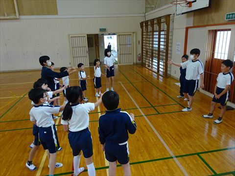 縦割り班で、1年生だけでなく班員みんながなかよくなるよう、ゲームや遊びをとおしてふれあいました。