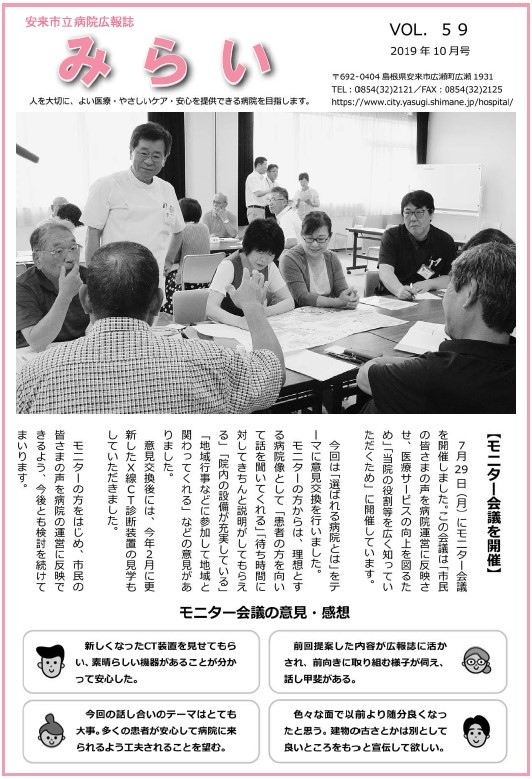 安来市立病院広報誌「みらい」を紹介しています(クリックするとPDFファイルが開きます)。