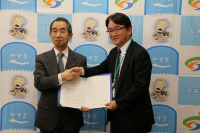 安来市と日本政策金融公庫松江支店は1月13日、「産業振興等に関する包括的連携協定」を締結しました。今後は、市内事業所のビジネスマッチングや農産物の販路開拓、6次産業化などにつき、連携して取り組みを進めます。